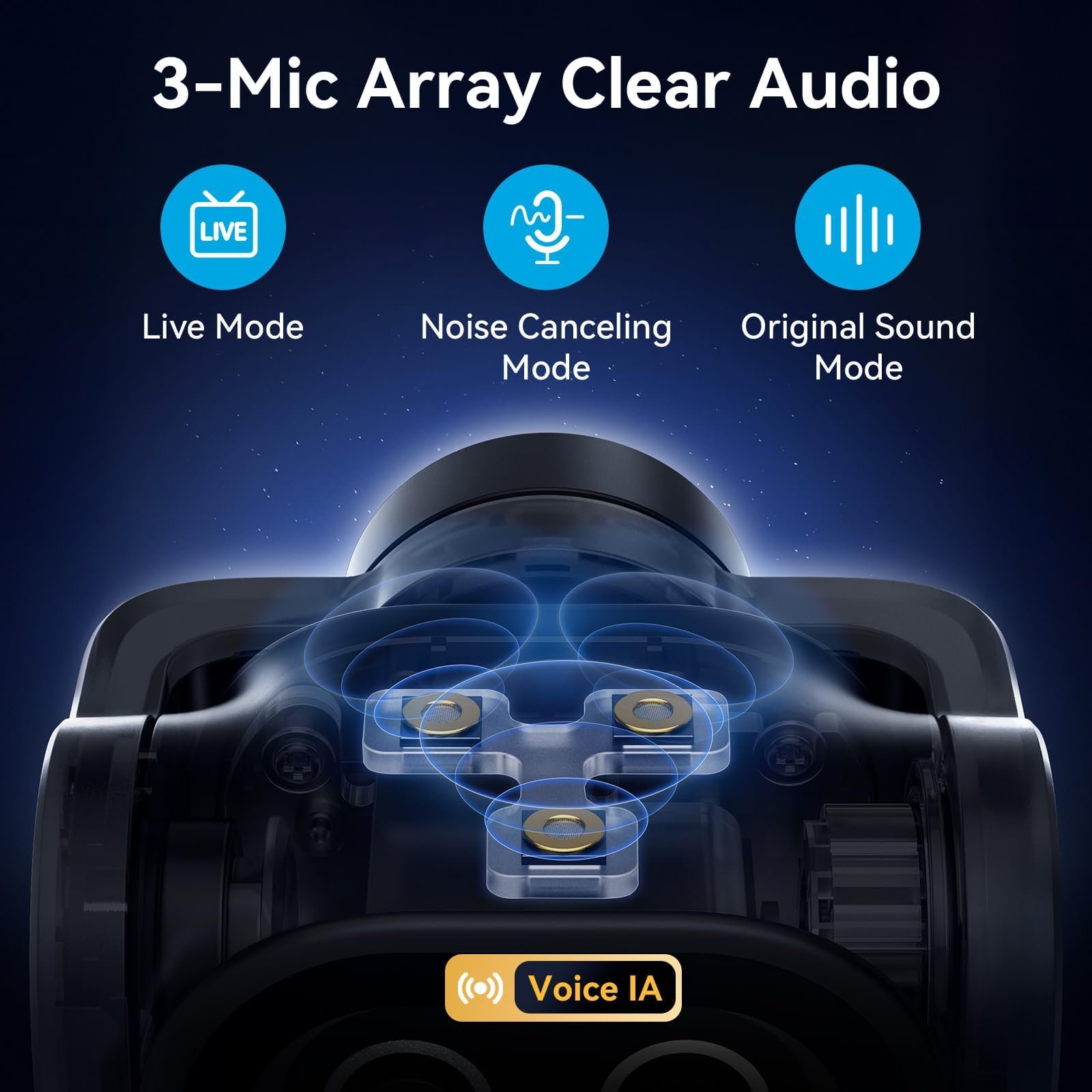 • Audio nítido: La matriz de 3 micrófonos con reducción de ruido garantiza que tu voz se escuche clara, incluso en ambientes ruidosos.