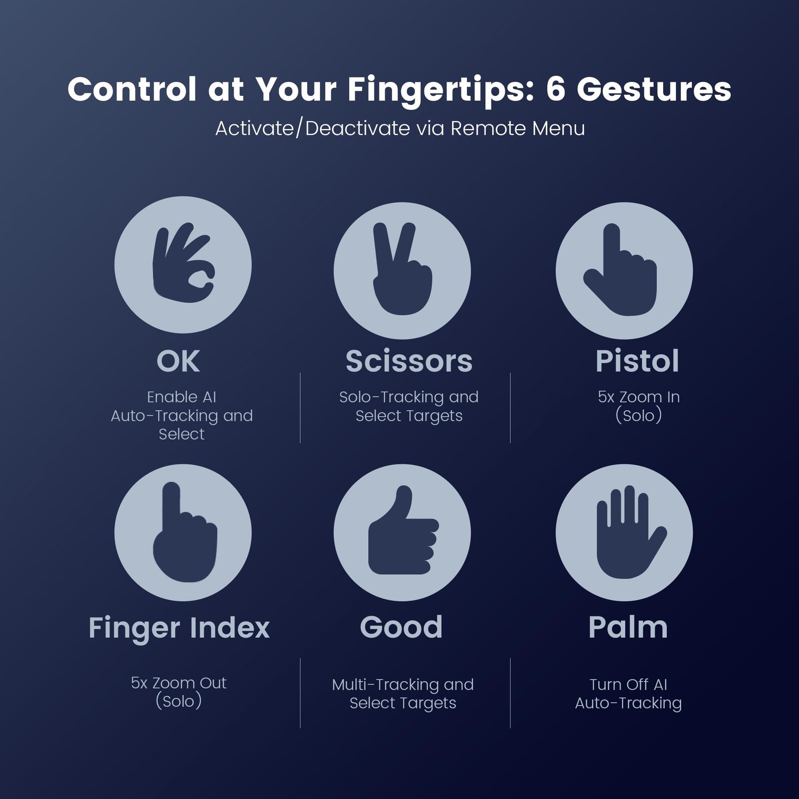 - Seguimiento Automático Inteligente: Gracias a su tecnología de IA, la cámara puede seguir automáticamente a los participantes mediante gestos, facilitando la interacción en tiempo real.