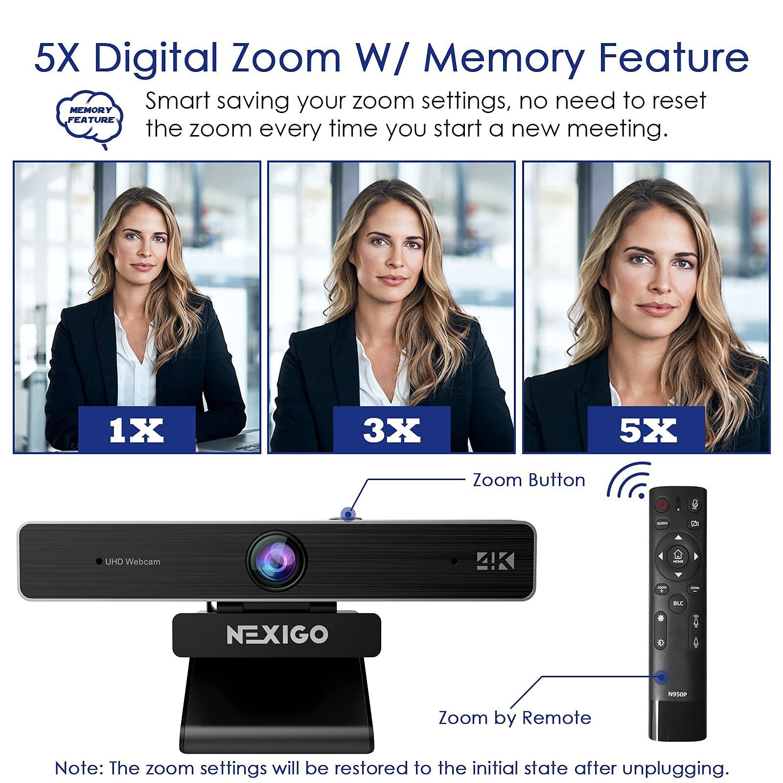 - Control remoto incluido: Ajusta el zoom digital de hasta 5x sin necesidad de moverte, facilitando la gestión de tus reuniones desde la comodidad de tu lugar.