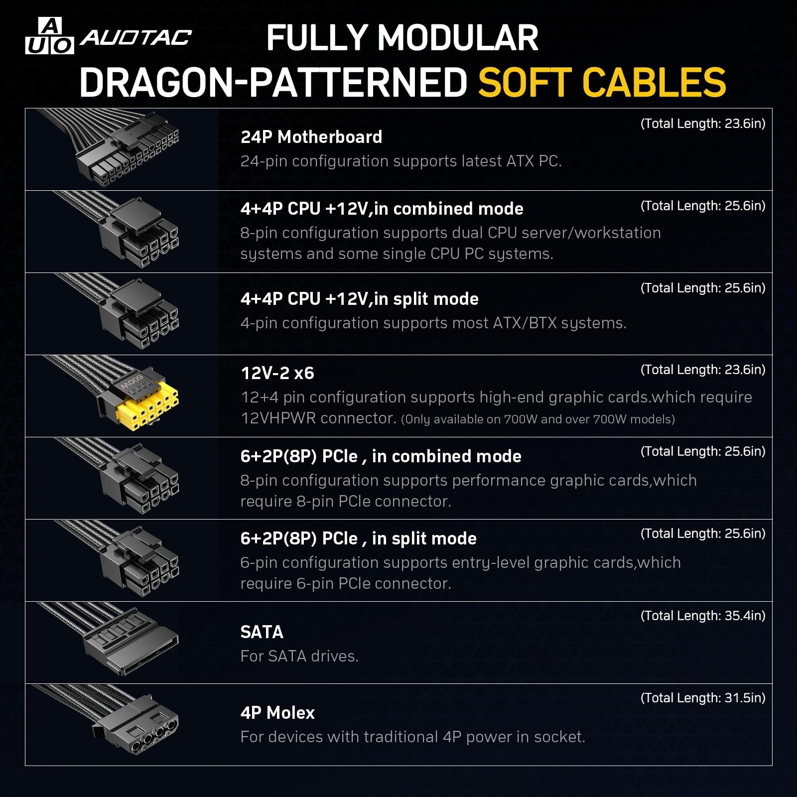 Potencia y eficiencia se unen en la fuente de alimentación Auotac S-850MZ 1000A-GR, diseñada para satisfacer las necesidades de gamers y profesionales que buscan un rendimiento excepcional en sus sistemas. Con una potencia de 1000W y una certificación 80 Plus Gold, esta fuente garantiza una eficiencia energética del 92%, optimizando el consumo y prolongando la vida útil de tus componentes.