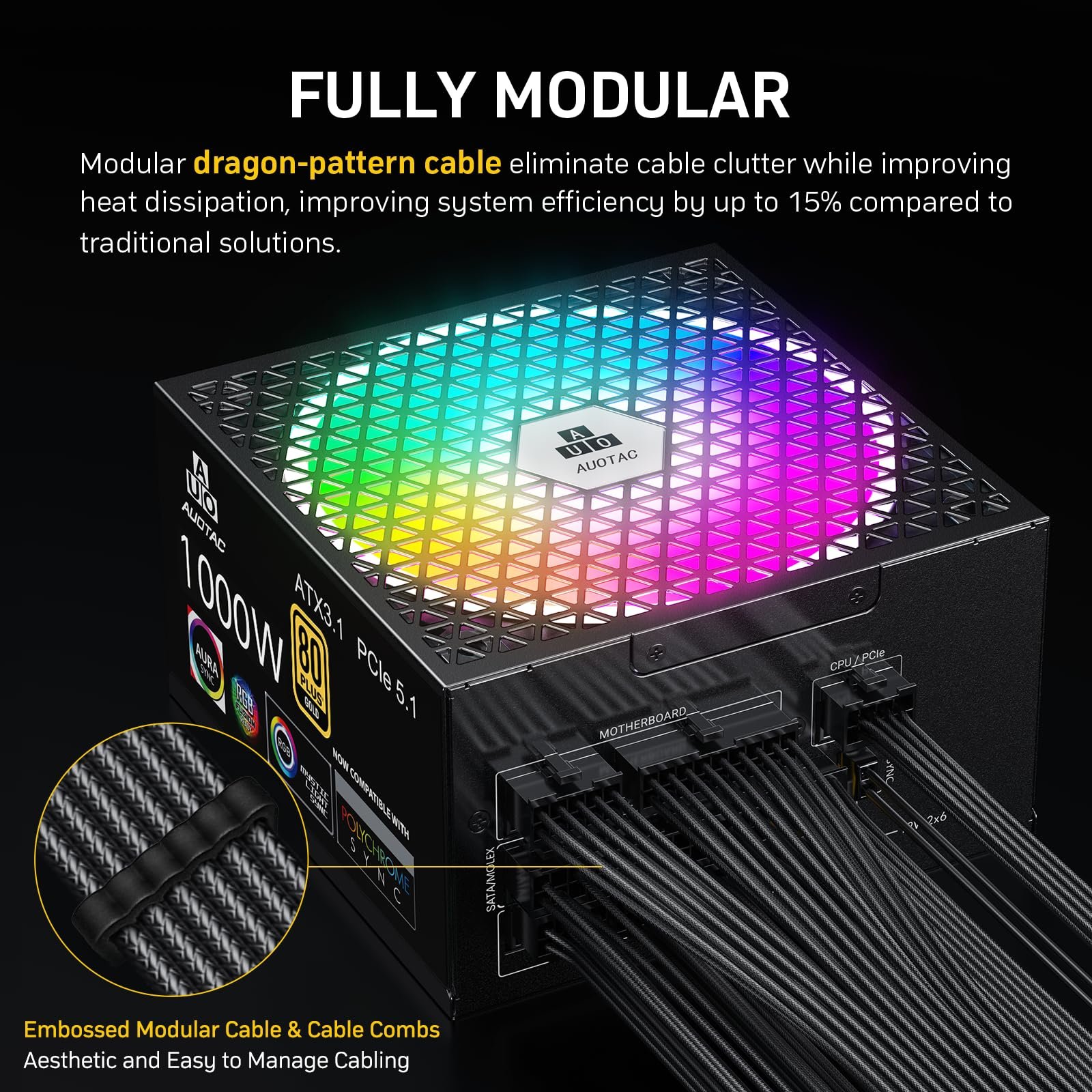Fuente de Alimentación Auotac S-850MZ 1000W 80 Plus Gold Modular RGB 140mm ATX