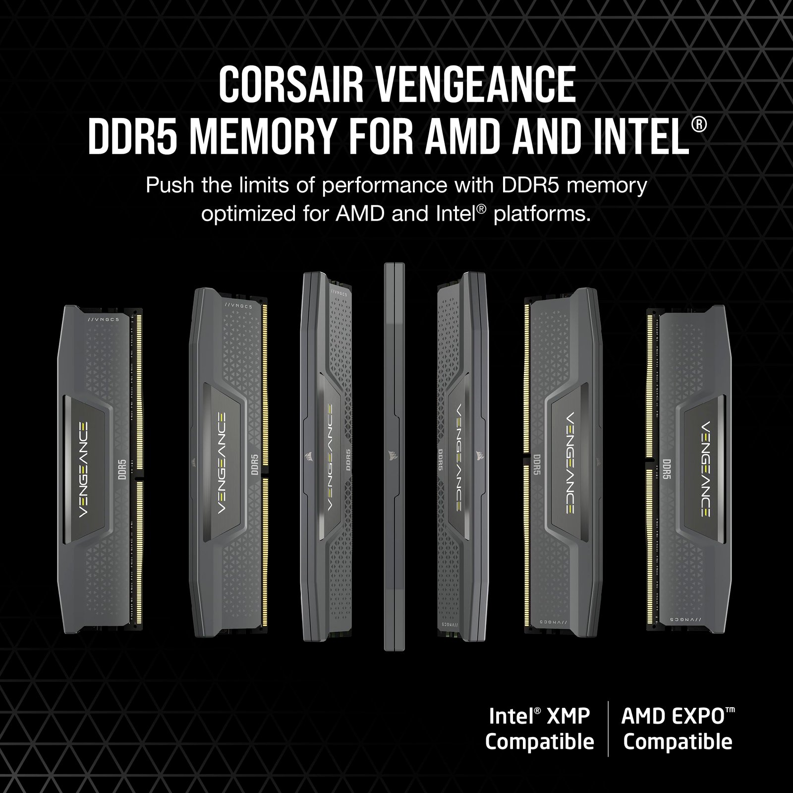 | Modelo detallado | CORSAIR Vengeance DDR5 32 GB (2 x 16 GB) 6000 MHz CL38-44-44-96 1.35V Intel XMP 3.0 AMD Expo – Memoria de escritorio para computadora – Gris |
