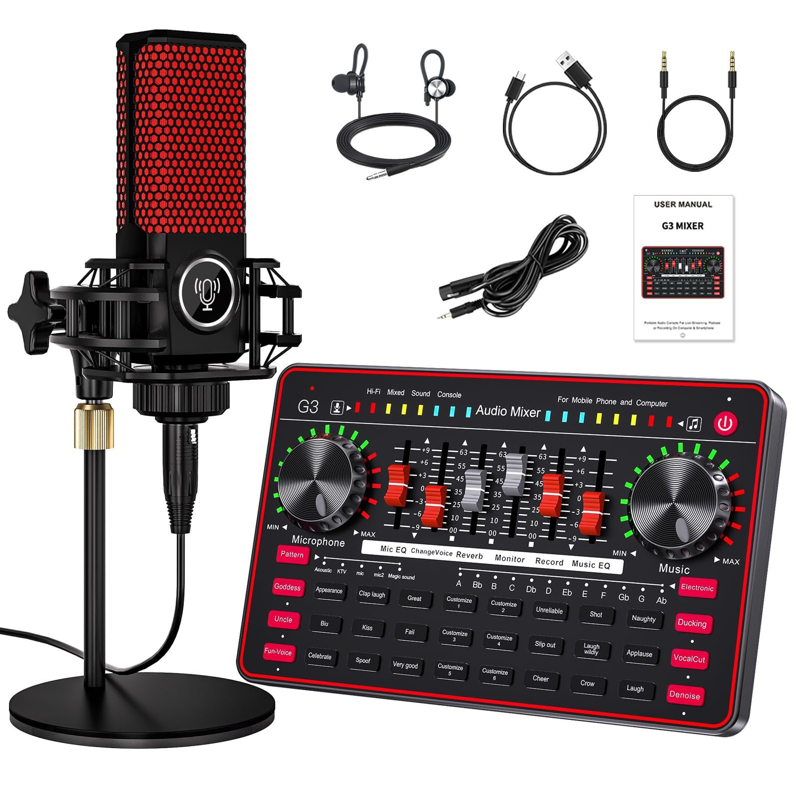 Descubre el Kit Profesional de Audio G3-Q8, la solución ideal para elevar la calidad de tus transmisiones en vivo, grabaciones y podcasts. Diseñado específicamente para creadores de contenido, este kit combina un mezclador de audio versátil y micrófonos de alta calidad, permitiéndote ofrecer una experiencia sonora excepcional desde la comodidad de tu hogar.