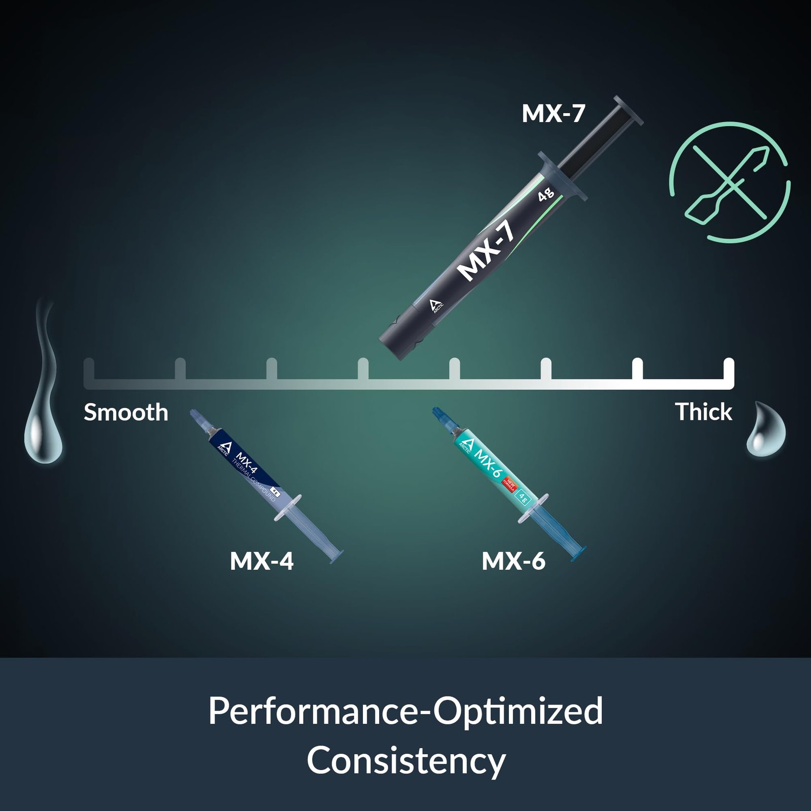Optimiza la refrigeración de tus dispositivos con la pasta térmica Arctic MX-7, diseñada especialmente para entusiastas de la tecnología y gamers. Esta pasta térmica es perfecta para quienes buscan mantener sus CPU, GPU y consolas a temperaturas ideales, garantizando un rendimiento óptimo y prolongando la vida útil de sus componentes.