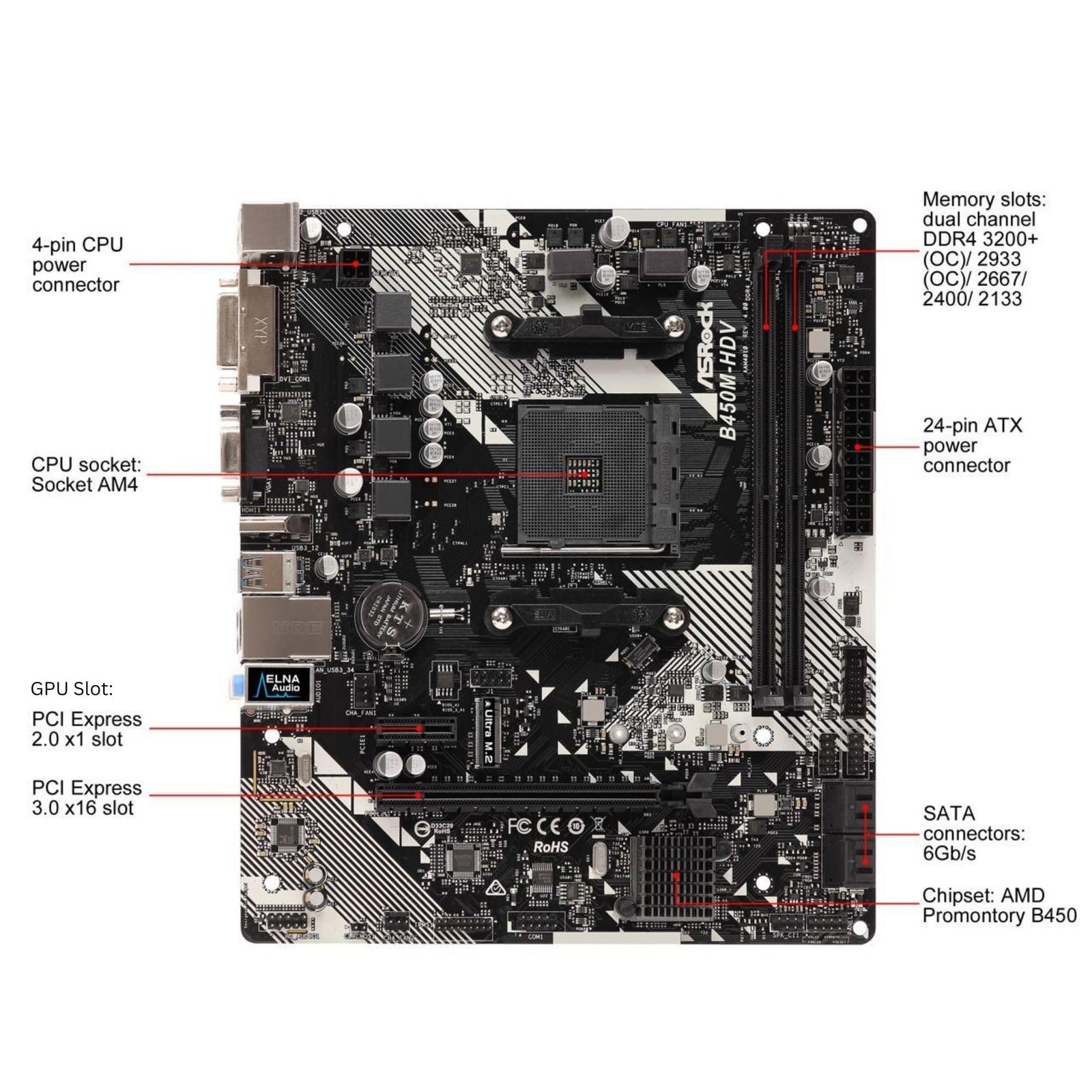 - Estabilidad y eficiencia: Su chipset AMD B450 y la capacidad de soportar velocidades de RAM de hasta 3200 MHz garantizan un funcionamiento suave y eficiente.