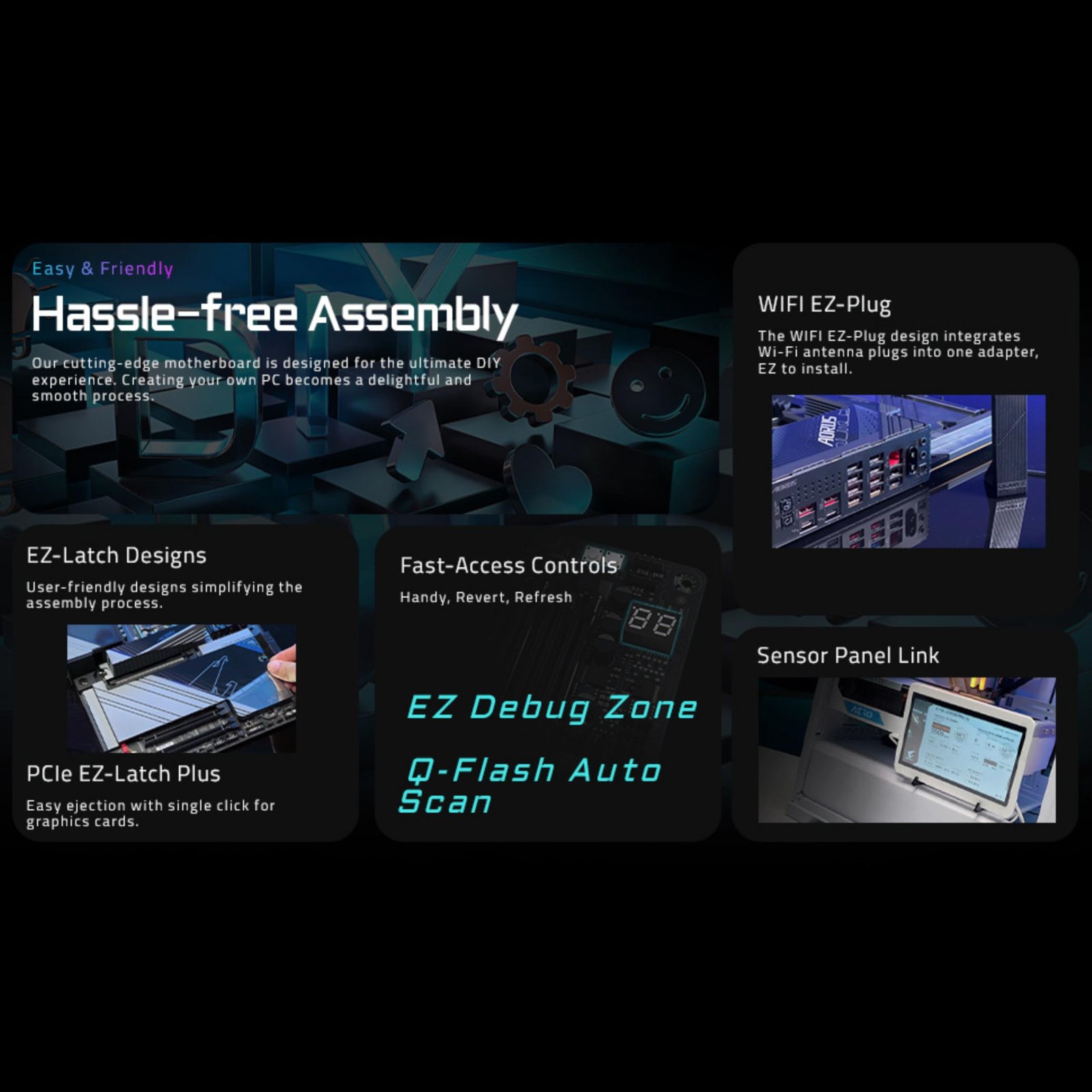 - Facilidad de personalización: Ideal para entusiastas del bricolaje, cuenta con funciones como M.2 EZ-Latch y PCIe EZ-Latch, que simplifican la instalación y optimización de tu sistema.