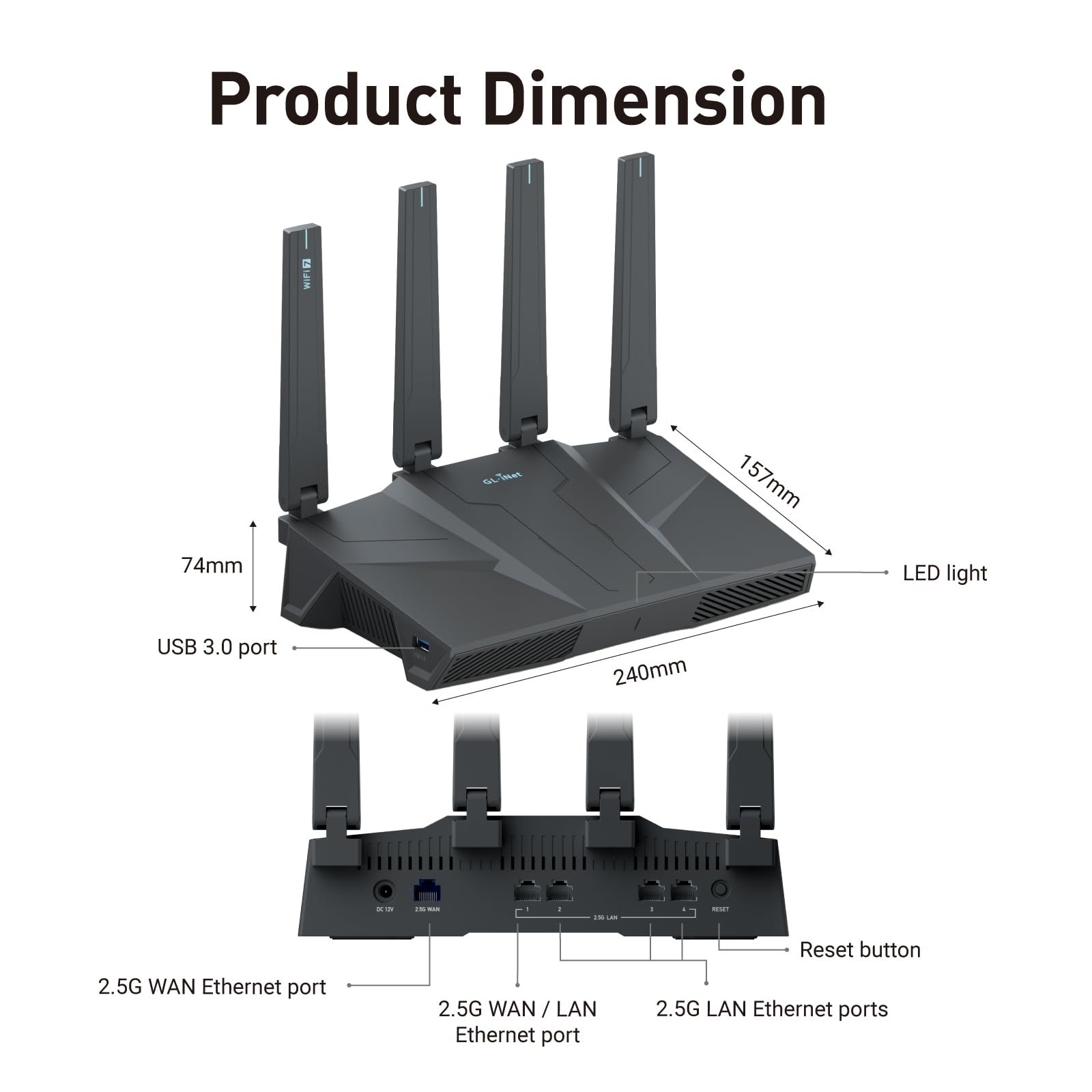 Usted está viendo: Router WiFi 7 GL.iNet GL-BE6500 Flint 3e Negro, 5 Puertos 2.5G, Conexión Inalámbrica y por Cable $ 1.004.900